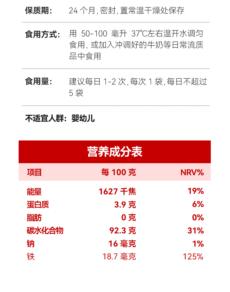 It can quickly replenish the iron required by the human body, effectively improve iron deficiency anemia, restore your rosy complexion, and increase your energy. At the same time, it helps to enhance immunity, promote brain and body development, and provide a solid guarantee for your healthy life.